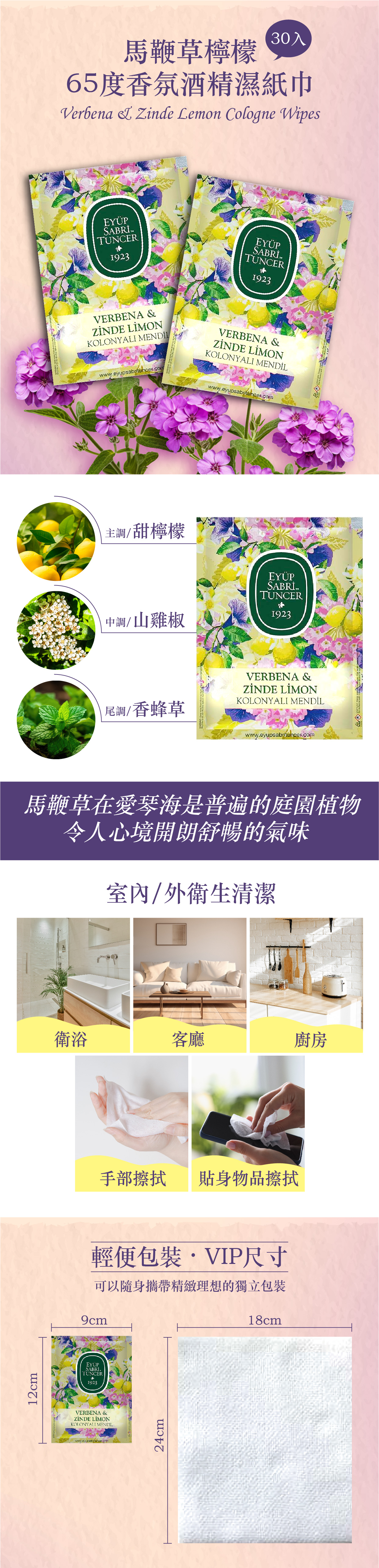 品名 | 65度酒精獨立包香氛濕紙巾VIP 30入-馬鞭草檸檬
