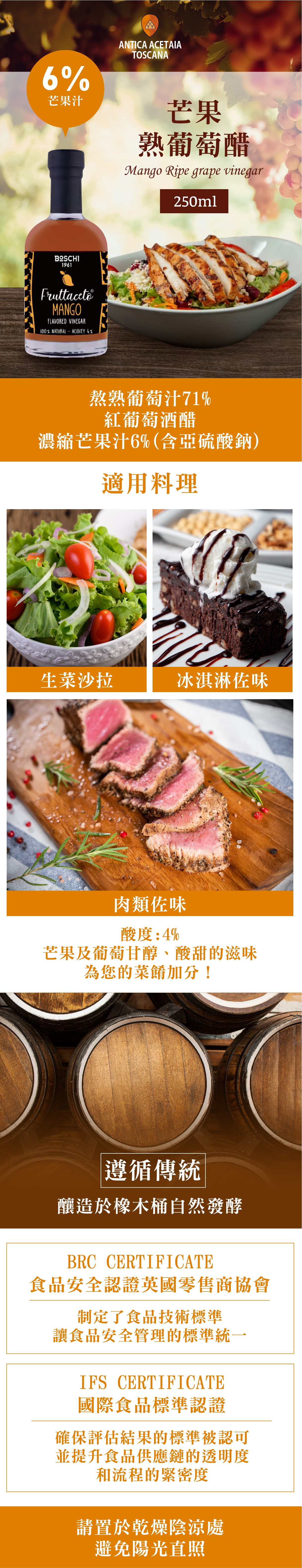 Antica Acetaia Toscana 芒果熟葡萄醋250ml
